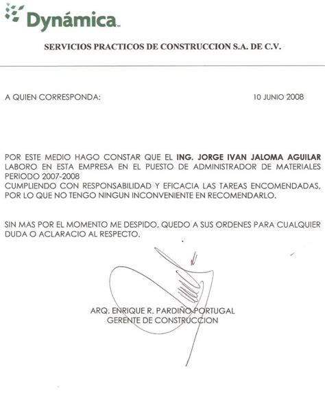 Carta De Recomendacion Y Constancia Laboral  Soalan bg